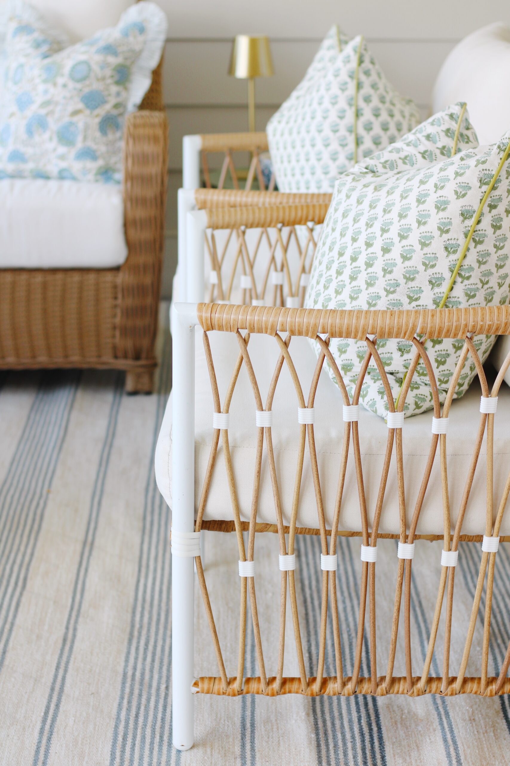 The biggest game changer was adding a true “anchor” piece to the space. We went with the Hudson sofa from Birch Lane, and it completely transformed how we use the porch. It’s big enough for all of us to pile onto, durable enough for real life, and still feels elevated—which, if you know me, is always the goal. More of my thoughts on the sofa, here!