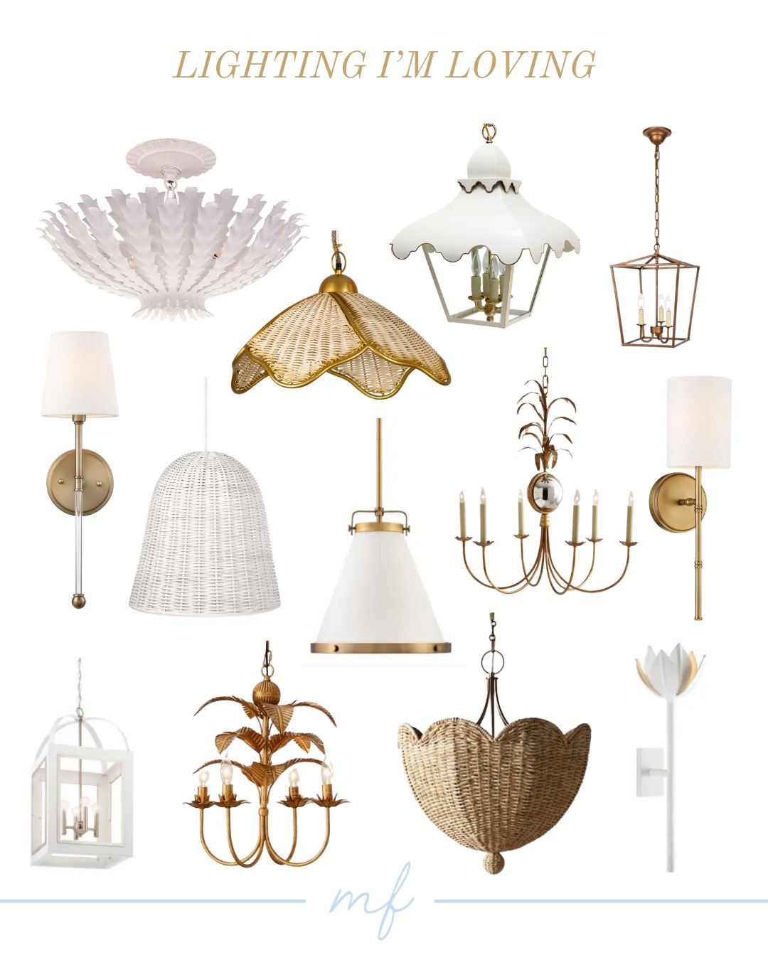 White, rattan and brassy tones! My favorite home accessory to shop for has always been lighting! It’s the jewelry of any room and an easy way to make a statement. Today I’ve rounded up a few of my all-time favorite lights to help you find new fixtures for every room in your home! I’ve used many of these lights in my home or client’s homes! There’s something in every price point so hopefully, you can find something you love that also works well with your budget!